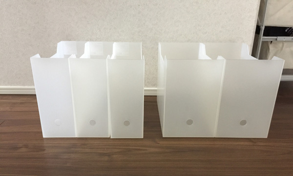 問題点は開閉する度に鍋の蓋が転がっていくこと。そりゃそうだ。後、いっそ引き出し内をファイルボックスで埋めちゃった方が収納力があがるんじゃね? と思いやってみることにしました。