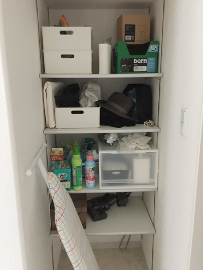 収納しているものは主に掃除道具とかです。ごっちゃりしてる~。頑張って改善していきます