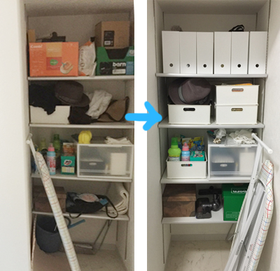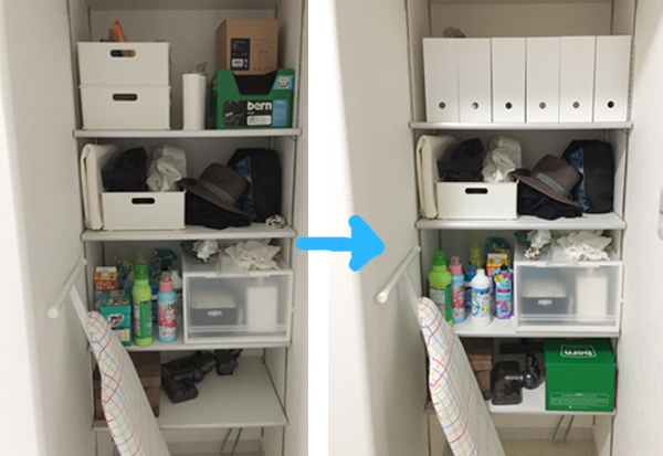 面白いなーと思ったのは、他は変わってないのにファイルボックスずらりにしたら何だかすっきりして見えたこと(見えますよね?)。視線が上に行くから? そんなファッションにおけるストールみたいなことが起こるのかな?